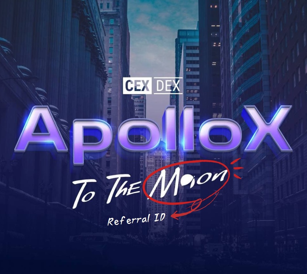 아폴로X는 CEX(중앙화거래소)와 DEX(탈중앙화거래소)가 모두 있으며 CEX에 가입할 때 레퍼럴 ID 로 moon을 입력하면 평생 50%의 수수료 할인이 제공된다.(CEX만 적용)